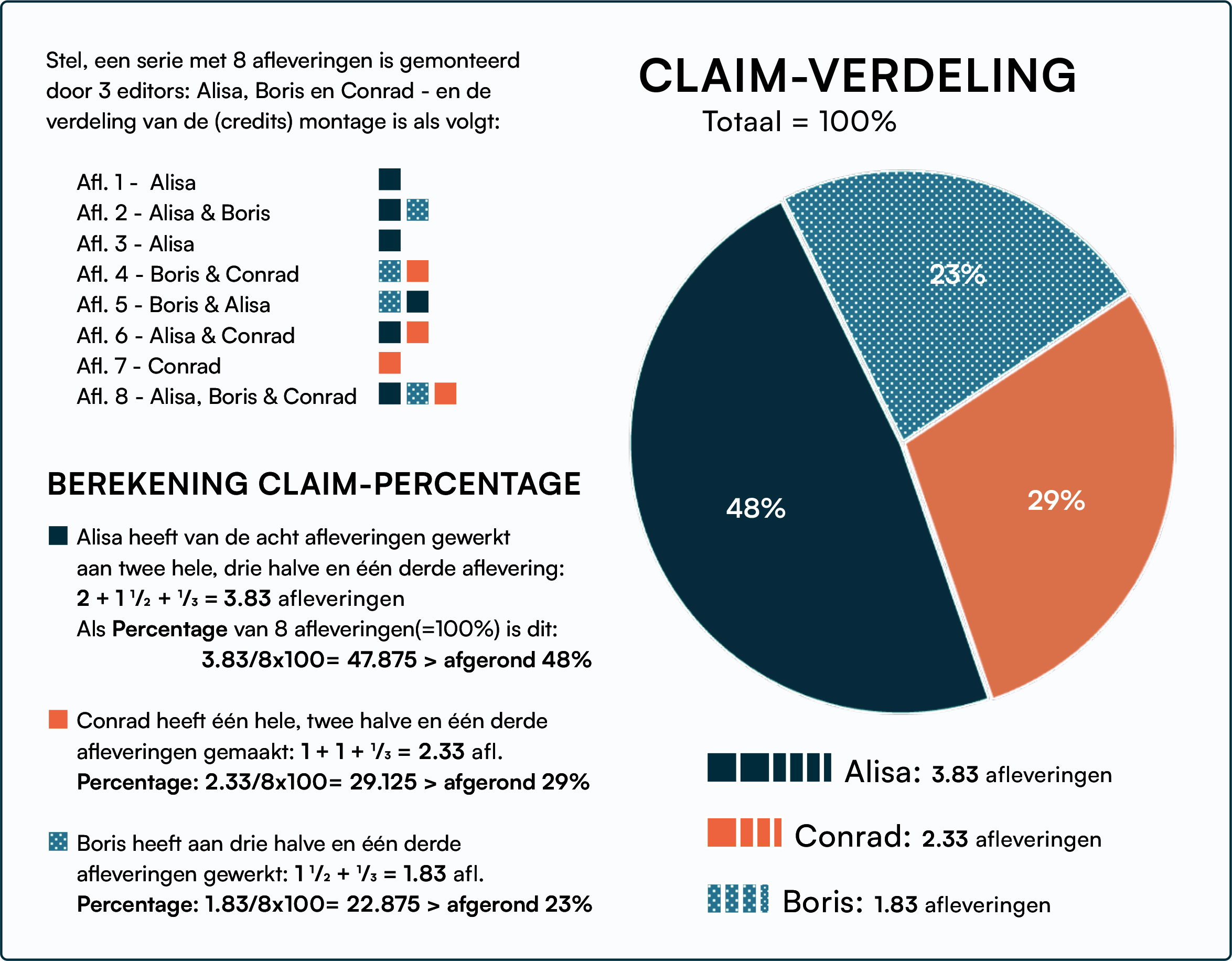 Als je een gedeelde credit hebt, of bijvoorbeeld niet alle afleveringen van een seizoen of serie hebt gedaan, dan claim je het percentage waar je recht op hebt. In principe volg je hierbij hoe je credit is vermeld.